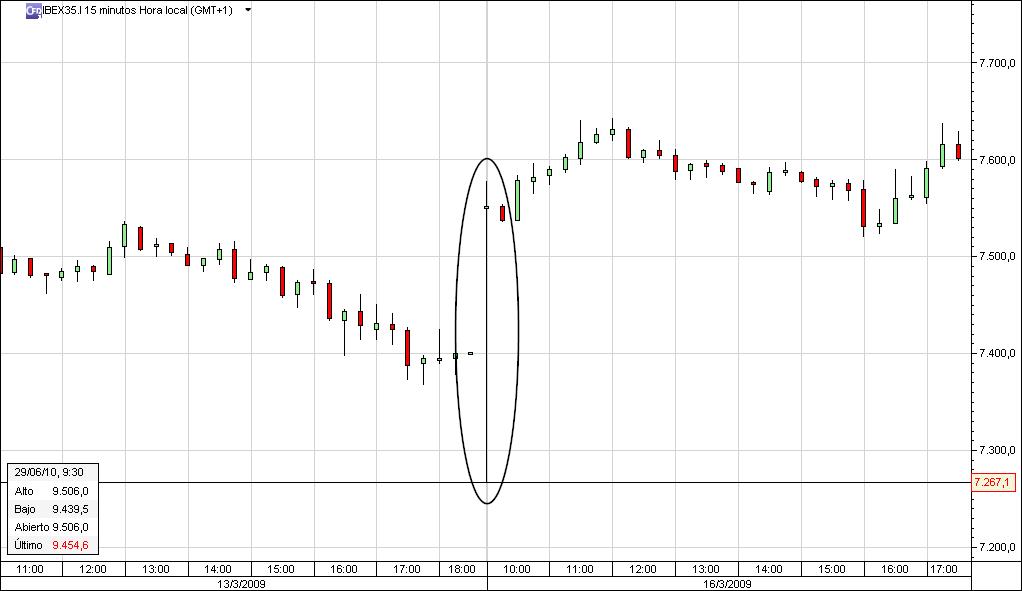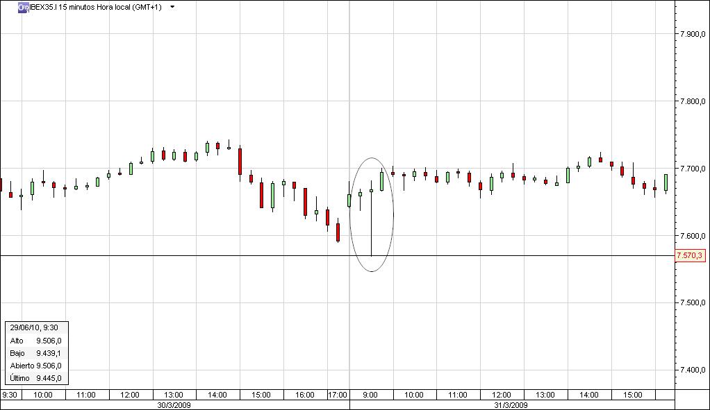 Te pongo dos ejemplos. ¿Qué hubiera pasado si compras en el precio inferior, a pesar de que el precio del índice en ningún momento bajó tanto, y vendido minutos después más arriba?