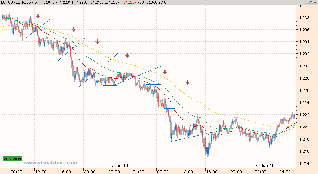 El sistema de hoy, por decir algo, ya que es más un método que otra cosa, intenta aprovechar las tendencias después de que el precio se ha quedado descansando y empieza a retomar el camino que hasta ese momento traía.