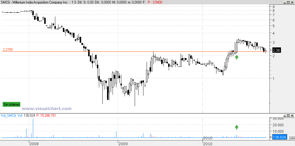 Mirando el Nasdaq Capital Markets he encontrado este valor(Millenium India Acquisition Company Inc).