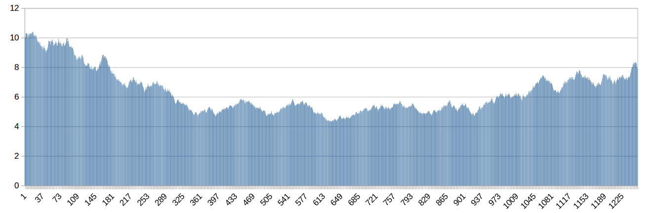 Lo desarrollé hace unos 10 años cuando empecé a estudiar teóricamente la Bolsa (que es la razón por la que empecé a interesarme por ella, razón puramente intelectual, no crematística). En este programa veréis todas las series históricas ALEATORIAS que queráis, que es lo importante. Como previamente estudié muchas series históricas reales con este programa, también veréis otros elementos (tendencias, canales, soportes - resistencias), que son una especie de "residuo" de mis estudios iniciales, cuando empecé a investigar, de forma matemática, los principales tópicos del Análisis Técnico. Pero habida cuenta de la absoluta inutilidad del AT, evidentemente estos elementos no tienen el más mínimo interés; lo interesante es ver simplemente el realismo de las curvas que se dibujan, difícilmente distinguibles de los históricos de cierres reales.