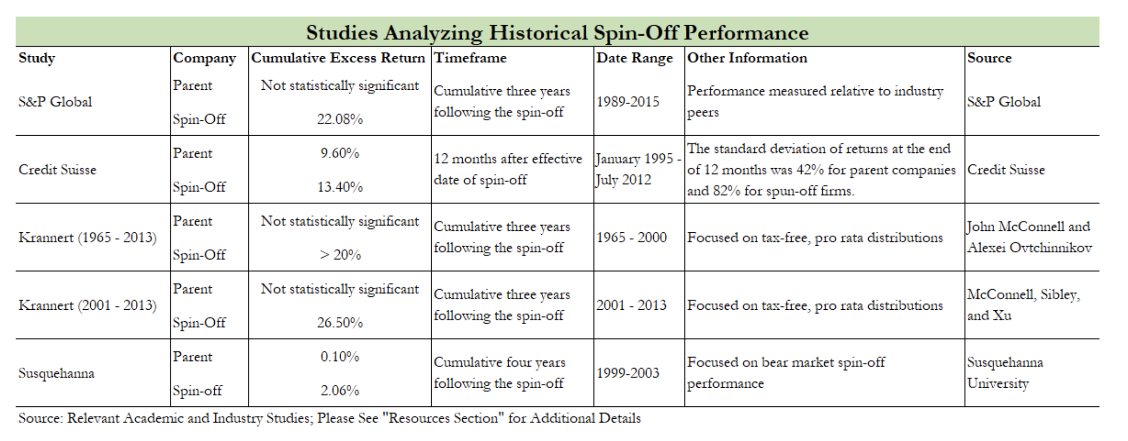 Spinoff value creation is not dependent on the pace of economic growth.