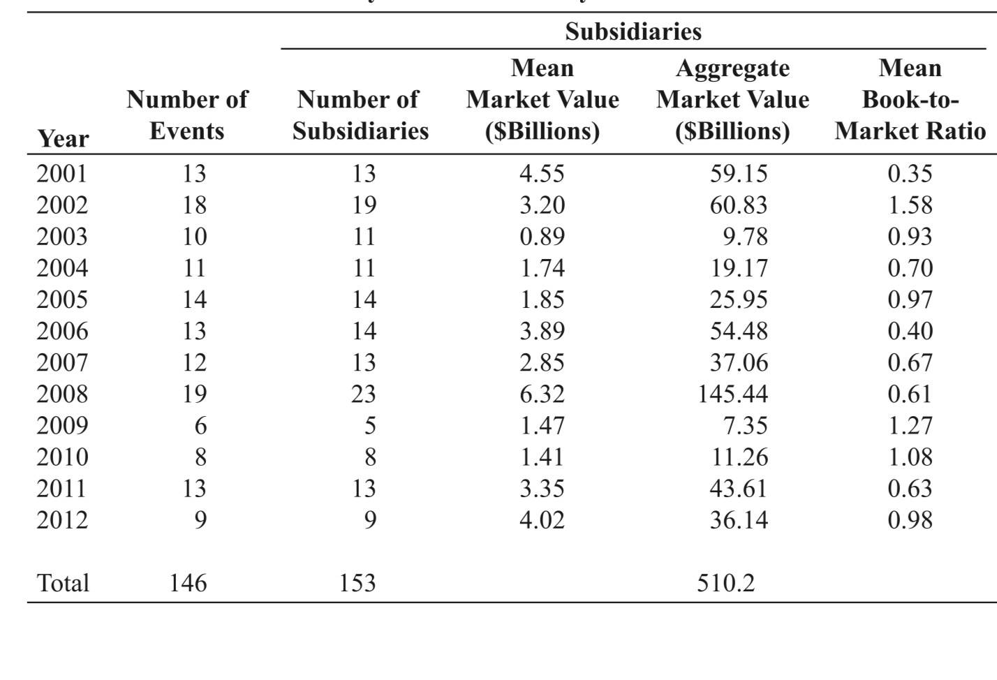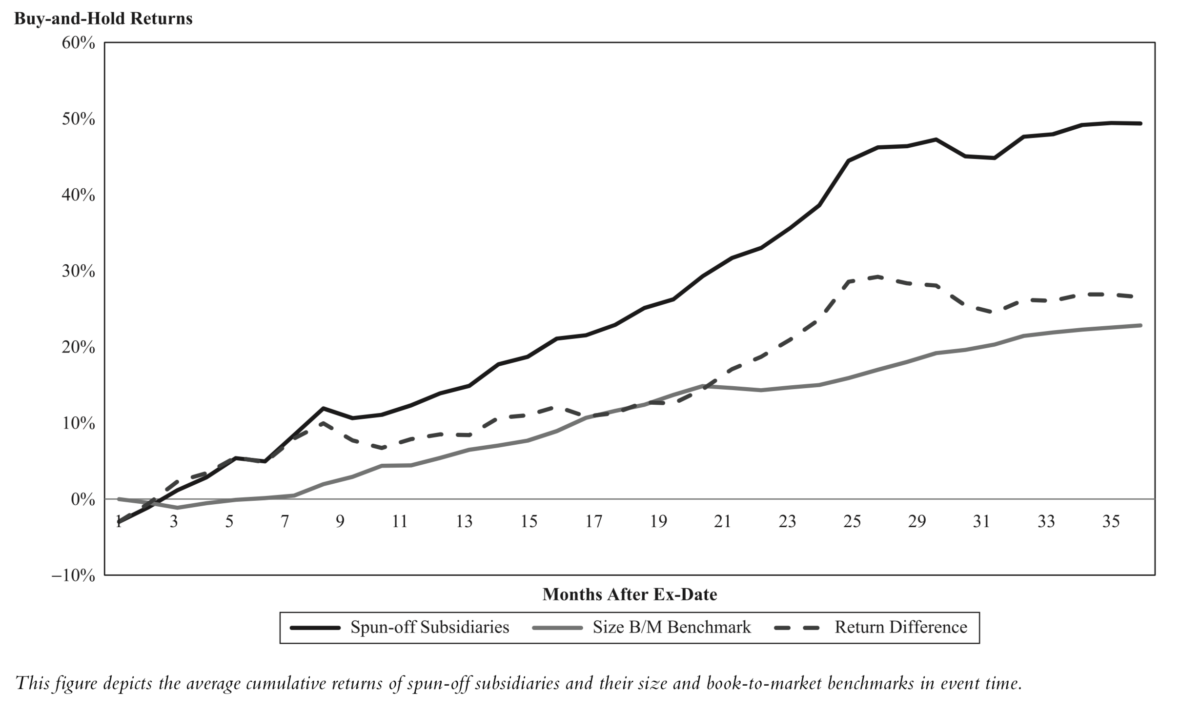 On average, subsidiaries have outperformed their benchmark companies by over 20% over the first three years following the spinoffs.