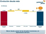 Joan Lledó El beneficio neto obtenido es de 404 millones de euros, un 0,5% más que en el primer trimestre de 2014. El EBITDA es de 1.369 millones de euros, lo que supone un aumento de 145 millones de euros. El ratio de endeudamiento es de 47,7% y la deuda financiera/EBITDA es de 3,2 veces.