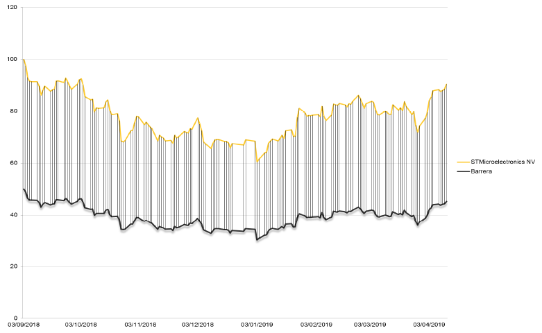 Uno de los productos más negociados de Commerzbank AG en la Bolsa de Milán ha sido un Turbo Warrant Ilimitado BEST sobre el subyacente STMicroelectronics N.V.