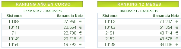 Los mejores sistemas automáticos de trading de la semana del 30 de julio al 3 de agosto de 2012: