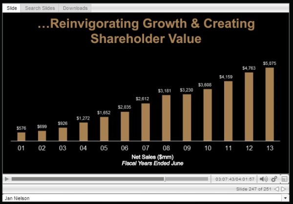 Coach Bags (Coach Inc.) es una compañía especializada en productos de lujos para hombre y mujer, aunque, tradicionalmente, la mayor parte de sus ingresos provienen de los bolsos de cuero para mujer. Coach era, hasta hace poco, una empresa excelente, con un balance que muchos envidiarían, unos retornos grandísimos y una marca con un fuerte posicionamiento. Sin embargo, una mala estrategia de crecimiento (basada en abrir tiendas outlet en vez de a precio completo) ha hecho que las ventas de la empresa caigan en picado en su principal mercado (Estados Unidos) con descensos de dos cifras porcentuales. Todo esto ha hecho que la cotización de Coach haya pasado de 55 dólares cuando escribí el primer post, a 40 cuando escribí el segundo y a 34 mientras escribo este. Todo esto mientras, como sabemos, la Bolsa no para de subir y las empresas del sector de Coach aumentan el gap con respecto a ella.
