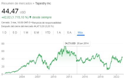 Coach es una empresa de la que me gustaría comprar acciones, pero por la forma en la que invierto en Bolsa, prefiero seguir mirando desde la barrera. Me sorprende mucho que pretendan crear una marca a la que aspirar y de lujo cuando el porcentaje de tiendas de descuento es cada vez mayor. Mientras la estrategia sea esa, y aunque la acción cotice a múltiplos muy atractivos, seguiré esperando un cambio en la estrategia.