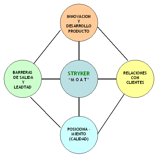 Entrar en una parcela que domina es dificil para los nuevos competidores. Sus productos se encuentran bien posicionados por un largo historial de exitos en el mercado, posicionamiento que costaría mucho tiempo y dinero suplantar. Dada la naturaleza estable del mercado reconstructivo es bastante improbable un cambio significativo en la cuota de mercado de Stryker.