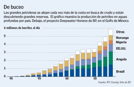 En el gráfico inferior vemos como los barriles de petróleo extraidos "en profundidad" han ido incrementándose con el tiempo, sobre todo desde el año 2005. Cuanto más caro esté el crudo más rentable será invertir para las empresas petrolíferas en busca de nuevos hallazgos, y todavía quedan muchas áreas por explorar.