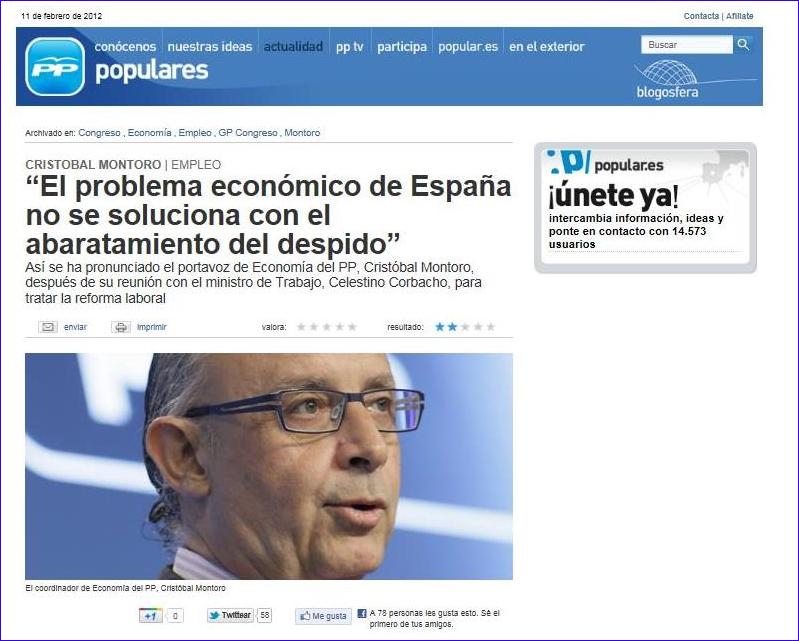 Ayer, nos han sorprendido con una reforma laboral mucho más dura de la que fue introducida por Rodríguez Zapatero en junio de 2010. Reforma en la que se abstuvo de votar junto al PNV, CiU, CC y UPyD, en un absoluta falta de sentido de Estado, que hoy podemos corroborar sin ninguna duda. Reforma en la que durante su debate parlamentario, pudimos oír a la actual Vicepresidenta del Gobierno, Dª Soraya Sáenz de Santamaría, algunos argumentos como estos: “Nosotros defendemos que esta reforma laboral es un fracaso anticipado y anunciado (...) porque después de dos años traen hoy este texto sin diálogo social y sin acuerdo político. (...) El decreto del Gobierno no está planteado para contratar, sino para despedir. Y lo que necesita España no es facilitar el despido, no es fomentar la salida, sino la contratación”.