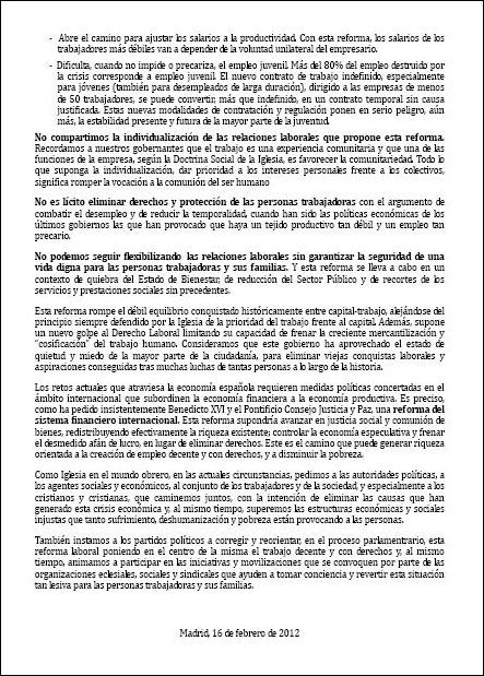 Reproduzco en este post, el sentir de dos organizaciones católicas ante la reforma laboral del gobierno. Que nada tiene que ver con la aptitud tomada por Monseñor Rouco Varela, en silenciar estos manifiestos y apoyar tácitamente la reforma.