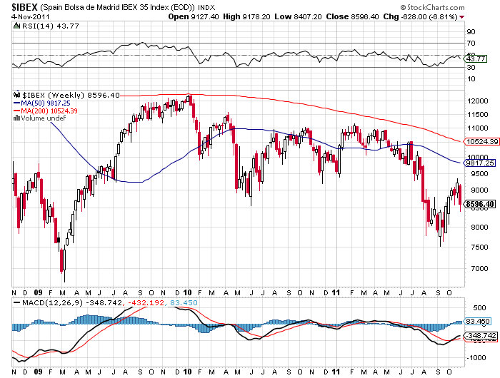 Llevamos cinco días de Noviembre y nuestro Ibex-35 se deja un 4%. En el año pierde un 12,81 %. La volatilidad no cesa, el va y ven de los mercados se h