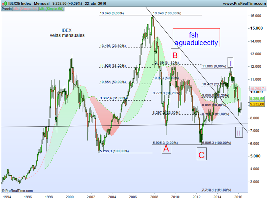 Esa corrección duró desde nov-07 a jul-12 , se realizó en A-B-C, como mandan los cánones Chartistas, y fijó su mínimo en los 5.905 de jul-12.