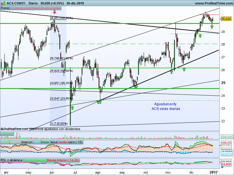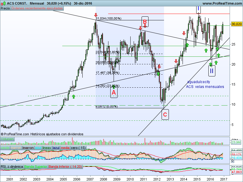 Este primer análisis del año lo realizo sobre ACS, siendo la acción del sector Construcción que más peso tiene en la mencionada cartera.