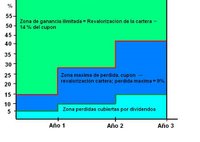 El banco además tiene la posibilidad de obtener muchas mas ganancias, siempre que la cartera subyacente, se revalorice por encima del 8,62 % que hemos comentado antes, el banco ganara, pudiendo llegar a obtener ganancias muy elevadas, (imaginaos que la cartera se revaloriza un 45 %, el banco ganaría: 45 % + 5,38 % - 14 % = 36,38 %)