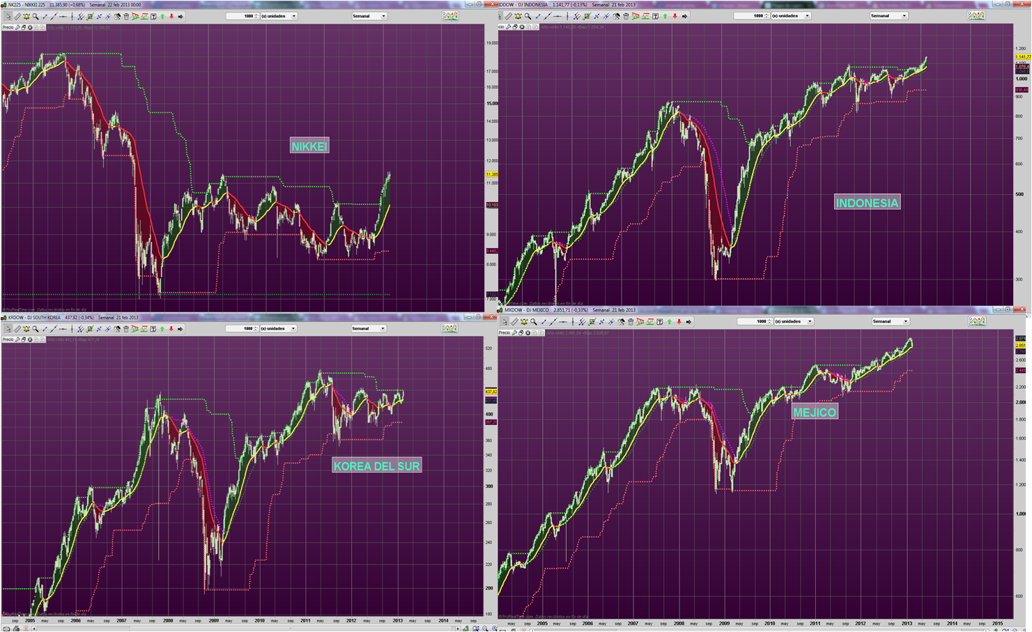 Os marco los gráficos de las bolsas de Japón, Indonesia, Mejico y Korea del Sur.