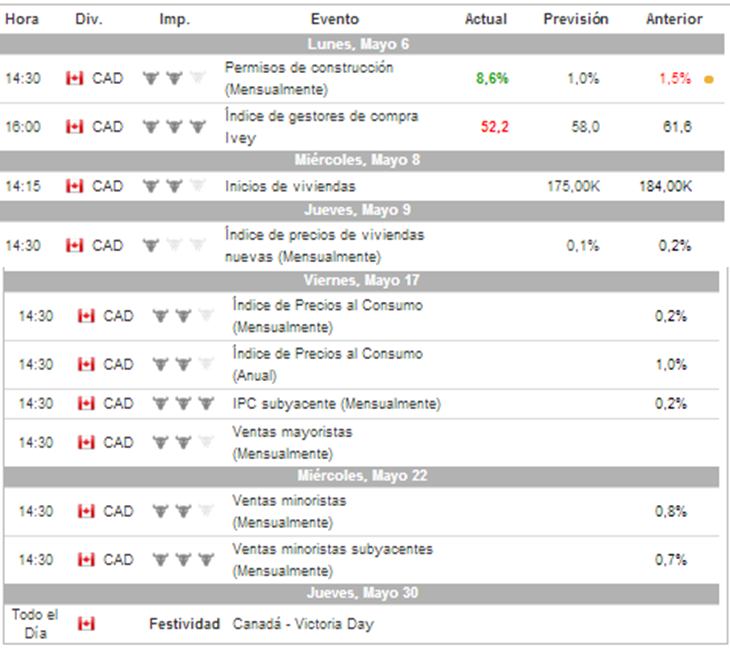 Citas del Banco Central de Canadá para Mayo (Bank of Canada)