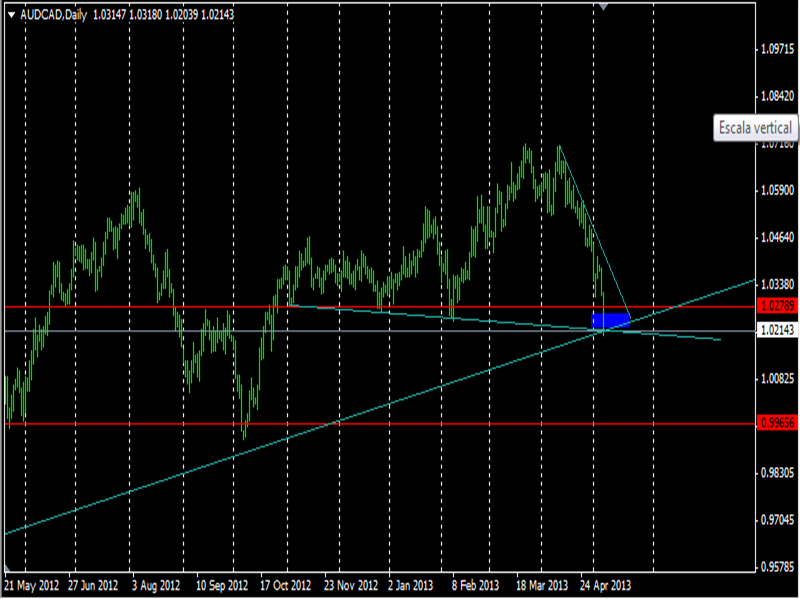 Tenemos dos soportes 1.0240 como posible zona de rebote y el siguiente el 0.9983 (gráfico diario)