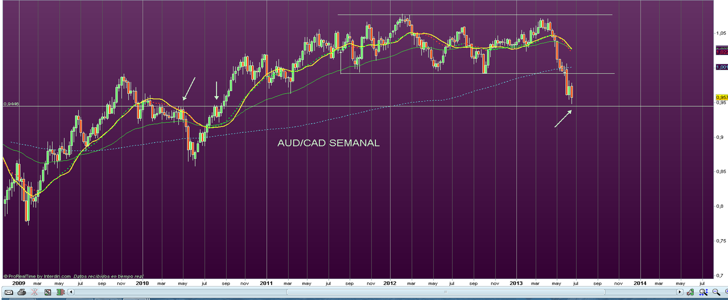 No es para mantener pero si para aprovechar el rebote cuando llegue al nivel 0.9452 en estos momentos 13.:25 h del 21/062013 cotiza a 0.9569. Para la semana que viene es muy probable que toque el nivel de entrada el objetivo es 0.9676 donde nos saldríamos de la posición, el stop 0.9370.