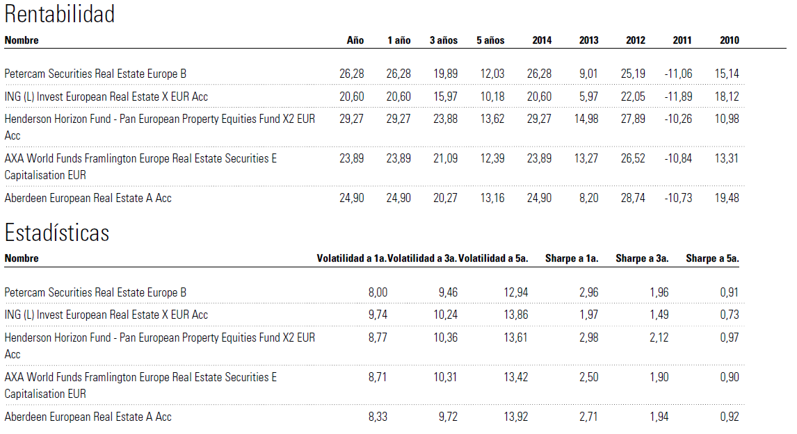 Adjunto algunos fondos de inversión que invierten en el mercado inmobiliario de forma indirecta en Europa.