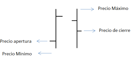 El precio de cotización al final de cada sesión es trazado con una línea uniendo los cierres de cada sesión.