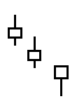 Martillo, la tercera vela siendo alcista o bajista suele ser una señal moderada de cambio de tendencia en este caso hacia una dirección alcista.