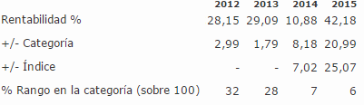 Sobre la gestora (Groupama AM) podemos decir que es uno de los actores franceses líderes en la gestión de activos que a finales de 2015 contaba con unos activos bajo gestión por valor de €92.000M, siendo la 9ª gestora en Francia por volumen de activos.