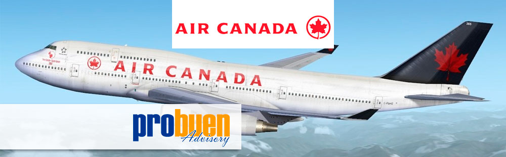 AIR CANADA es la mayor aerolínea canadiense, con vuelos a los cinco continentes, en más de 100 aeropuertos, con más de 41 millones de clientes y perteneciente a la STAR ALLIANZA NETWORK, junto a sus socios UNITED AIRLINES, LUFHANSA, SCANDINAVIAN AIRLINES y THAI AIRWAYS. Cuenta con un total de 390 aviones, de diferentes marcas como BOEING, AIRBUS, EMBRAER Y BOMBARDIER, según el destino final de vuelo.