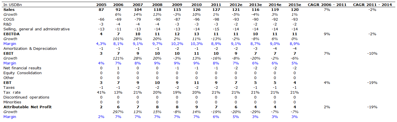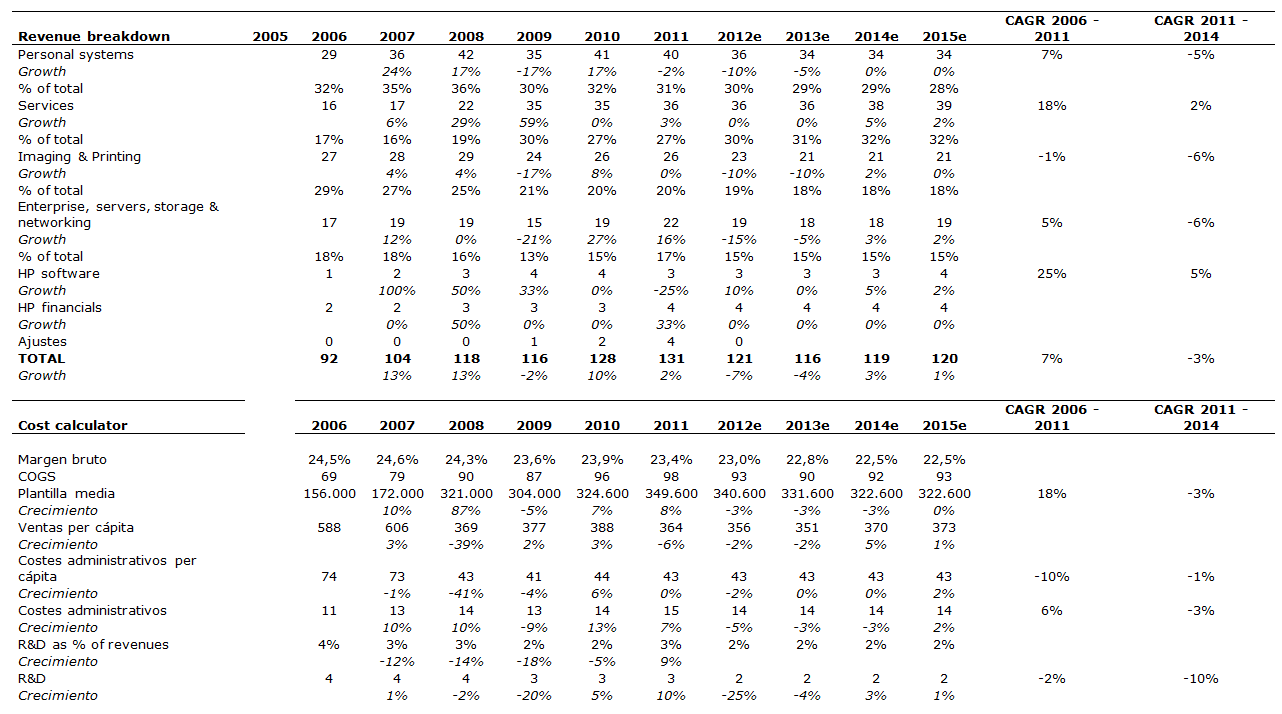 Aunque suena evidente, he buscado ser especialmente “duro” a la hora de proyectar los resultados de HP procurando estar muy por debajo de los crecimientos anuales del período 2006 - 2011.