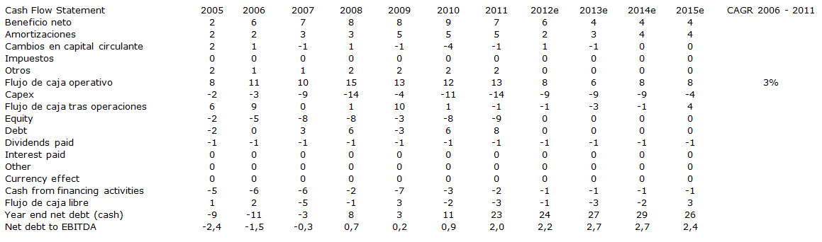 La generación de caja operativa, lo que la empresa genera de liquidez antes de inversiones, es buena. Desgraciadamente los requisitos de inversión son altos (lo comido por lo servido).