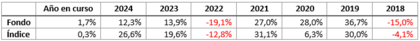 Las rentabilidades anuales alcanzadas por el Fondo y su índice de referencia son las siguientes: