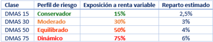 El Fondo DMAS está disponible en varias versiones, según el perfil de riesgo del inversor: