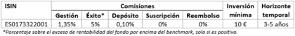 En el siguiente cuadro, te facilito los datos de identificación del fondo y el resumen de sus condiciones: