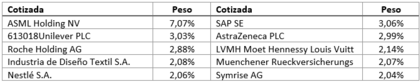 Las principales posiciones de la cartera de este vehículo de inversión, son las que te muestro a continuación: