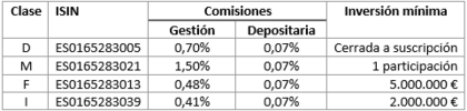 El fondo presenta diferentes clases, las cuales te detallo en el siguiente cuadro: