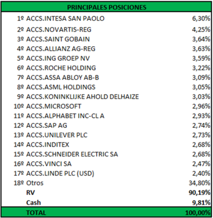 Y en cuanto a la cartera del fondo, ésta estará compuesta por las siguiente principales posiciones: