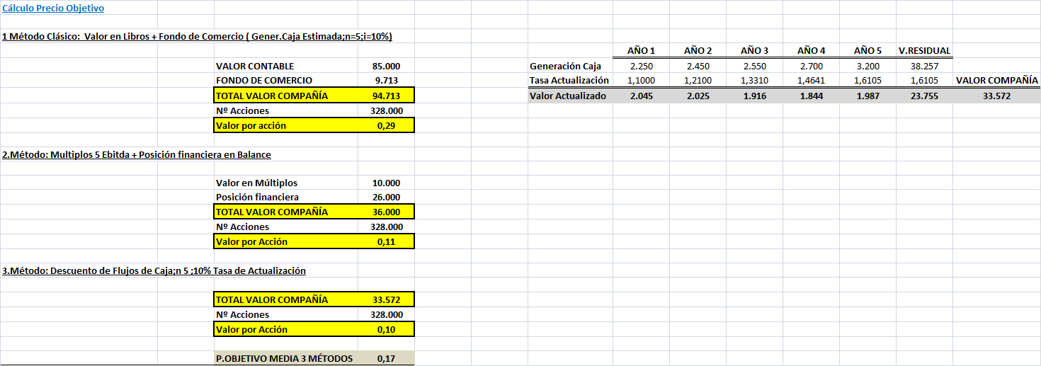 COMO SIEMPRE, DECIR QUE JAMÁS ESTE ANÁLISIS PRETENDE SER UNA RECOMENDACIÓN DE COMPRA, PORQUE ADEMÁS ESTAMOS ANTE UNA INVERSIÓN DE UN RIESGO MODERADAMENTE ALTO POR LA TIPOLOGÍA DE EMPRESA E INFORMACIÓN DISPONIBLE.