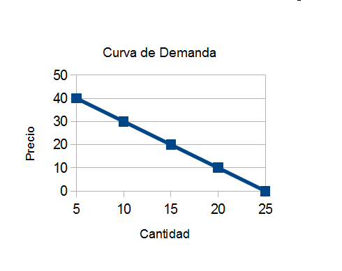 Como se ve en el siguiente gráfico la relación entre precio y cantidad, cuando los demás factores permanecen constantes, tiene una pendiente negativa, esto significa que si el precio de un bien se incrementa, la cantidad que demandamos de éste disminuye y si podemos, lo sustituimos por otro más económico que nos produzca la misma satisfacción.