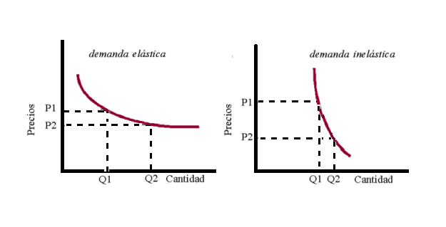 La elasticidad precio, mide la intensidad con la que responden los compradores a una variación porcentual en el precio. Cuanto más elástica sea la curva de demanda, más fácil es sustituir un bien por otro o consumir menos, como por ejemplo las entradas de cine, pero hay algunos bienes como los pañales que su elasticidad es inelástica, es difícil consumir menos pañales. En las siguientes gráficas se puede apreciar cómo a los productos con una demanda elástica va a ser difícil subir los precios porque la cantidad demandada va a disminuir considerablemente, en cambio en los productos con curva de demanda inelastica será mas fácil subir los precios ya que la cantidad demandada variará poco.