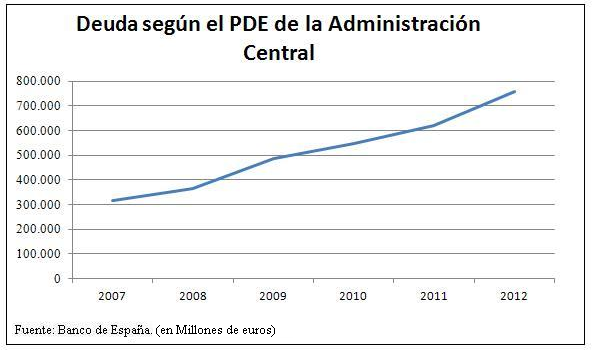 Cómo podemos ver, la mayor parte de la deuda del Estado, es de la Administración Central, que se ha más que duplicado en estos últimos seis años y que en 2012 ha crecido un 22%, siendo el mayor incremento en los últimos seis años.