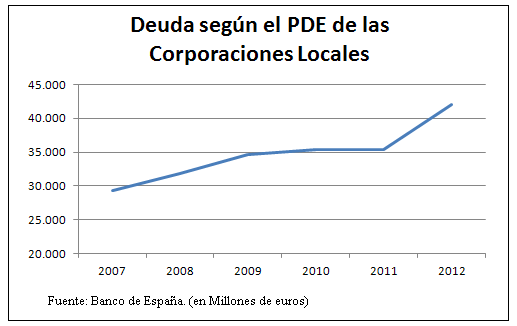 En el caso de la deuda de las corporaciones locales, en los últimos seis años ha sido, de las tres analizadas, la que menos ha aumentado, concretamente un 43% y en 2012 ha crecido un 18%.