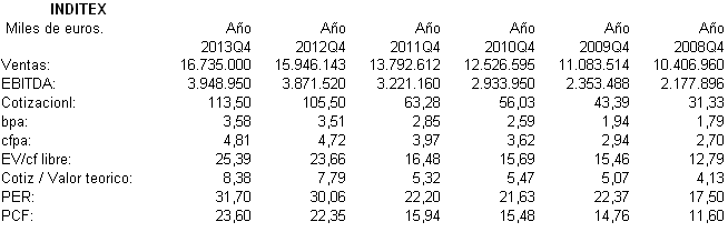 Estamos frente a una empresa con los objetivos muy claros que hasta ahora, le han estado dando buenos resultados: expandirse en mercados con crecimiento económico y mantener un estricto control de los gastos operativos. Pero los signos de ralentizamiento del crecimiento mundial se notan pese a que el grupo sigue aumentando el numero de tiendas, y este año los resultados no van a crecer al mismo al ritmo al que nos tenía acostumbrados. El precio actual de cotización, solo justificaría la inversión para aquel que crea que podrá continuar manteniendo o mejorando el ritmo de crecimiento durante muchos años más, cosa que se intuye difícil de conseguir.