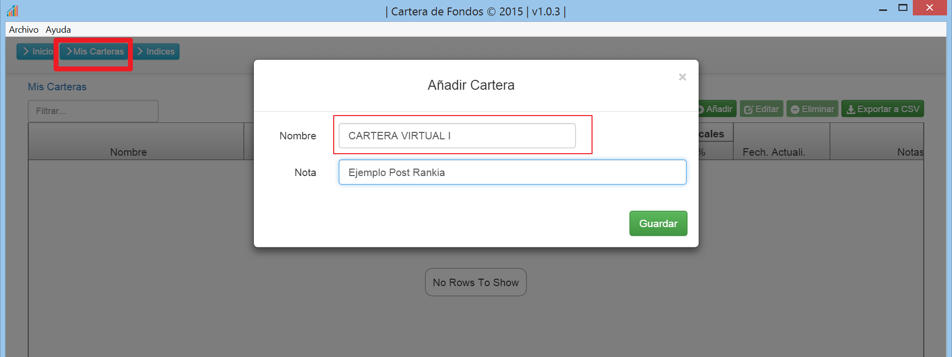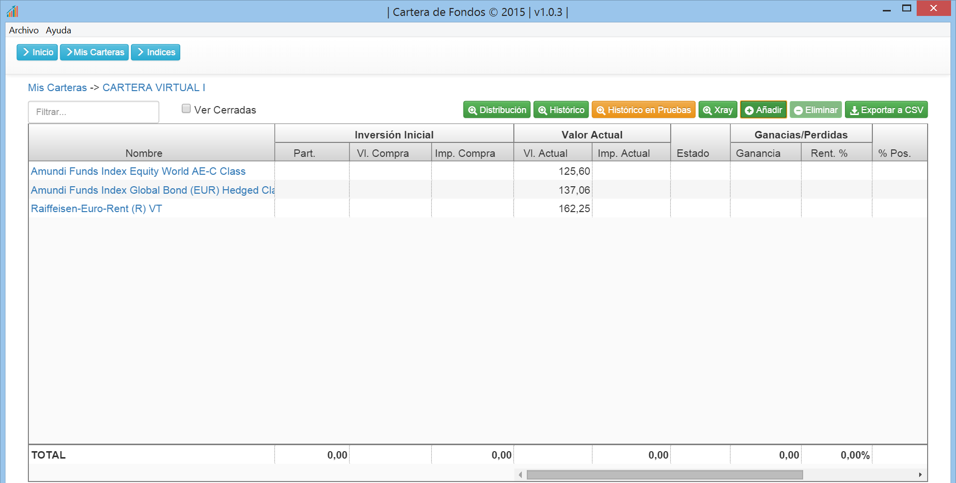 El objetivo de todas estas utilidades es tener a mano toda la información necesaria para conocer cada uno de los fondos. A continuación pasamos a explicar cómo dar de alta una cartera.