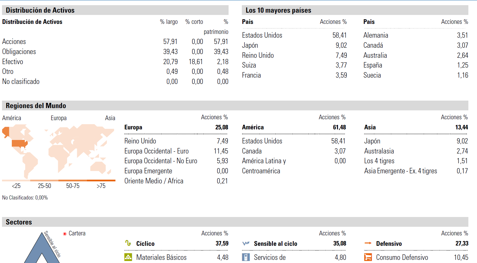- Distribución: consultar gráficamente la distribución de una cartera entre las distintas categorías de fondos.