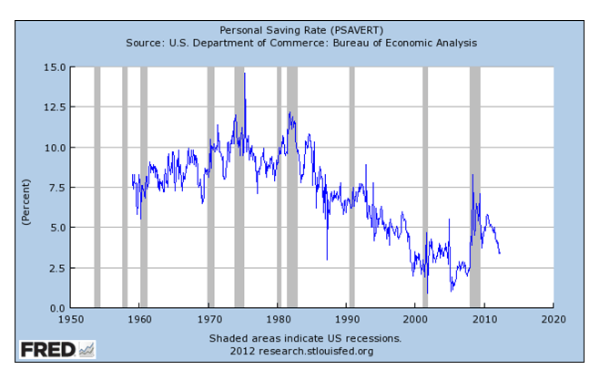 da de política monetaria y fiscal como hacía muchos años que no se veía, que incluyó bajadas de tipos agresivas, que consiguieron reducir las cargas financieras de los consumidores, ya que parte de sus deudas estaban a tipos variables, como las hipotecas. Además les bajaron los impuestos, o aumentaron las exenciones y las deducciones en los mismos. Su objetivo era claro, fomentar el consumo del ciudadano americano pese a la situación precaria de la economía. De este modo, alentaron el gasto privado, hasta el punto de que pese a que las empresas se desplomaban, y reducían su “capex”, o inversión en bienes de capital, y la tasa de desempleo incrementaba rápidamente, la tasa de ahorro del ciudadon pasó del 5%, a tasas cercanas a 0%, es decir, gastaban prácticamente todo lo que ingresaban.