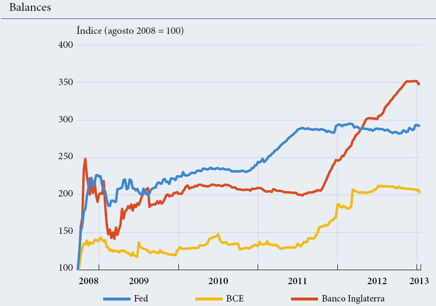 ecimiento y el riesgo de deflación. Ambos riesgos se originaron principalmente por la caída de sector inmobiliario, el desapalancamiento forzoso de la economía, y la inestabilidad de los mercados financieros, que esta vez tenían como epicentro Europa. Para afrontar este nuevo desafío, los Bancos Centrales incrementaron una vez más las medidas “no convencionales”, ya que las medidas de política monetaria tradicional se habían agotado.