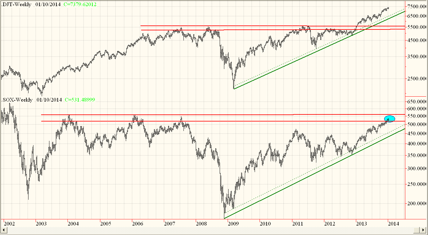 El primero, es el índice de transporte, que ha validado claramente la señal de fortaleza del SP500 superando los máximos de 2007 a 2012. El segundo, el Índice de semiconductores, que se enfrenta todavía a una resistencia muy importante y que por tanto aun no ha validado las señales de fortaleza del resto de los índices. Si se produce alguna señal de debilidad c