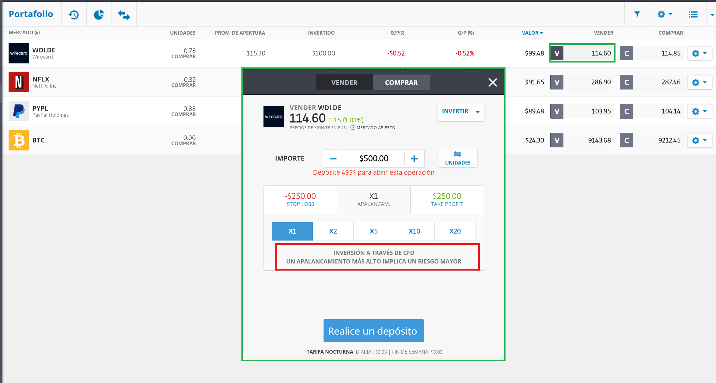 Dicho esto vale la pena señalar algo: el bróker no es tan fácil de usar como parece. Debemos ser muy cuidadosos a la hora de querer adquirir acciones ya que el bróker nos ofrece por defecto CFDs con apalancamiento. También la venta de acciones no es nada intuitiva ya que eToro abre una posición de venta al descubierto si hacemos clic en "vender" en alguna de nuestras posiciones en cartera (ver imagen). Por tal motivo pensé que sería buena idea hacer un tutorial que explique paso a paso cómo comprar y vender acciones.