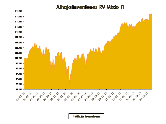 Alhaja Inversiones con un nivel de inversión en renta variable en este año, de media del 58% y con un nivel de volatilidad del 4,6%, cierra el mes de enero con un+1.35%.