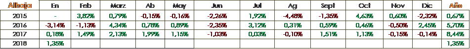 En el 2018 Alhaja se revaloriza un +1,35%.